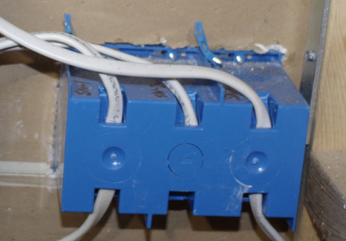 The image below is a 3 gang old work box installed in drywall. The view is from inside the wall. A 3 gang box is sometimes hard to find at the BORG or even a real hardware store.